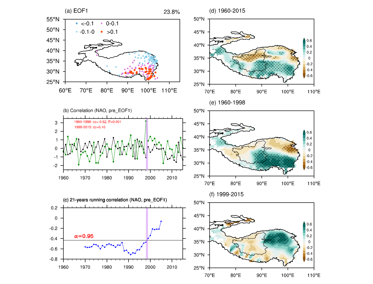 Research Progress研究发现夏季NAO与青藏高原降水偶极子模态的关系存在年代际变化