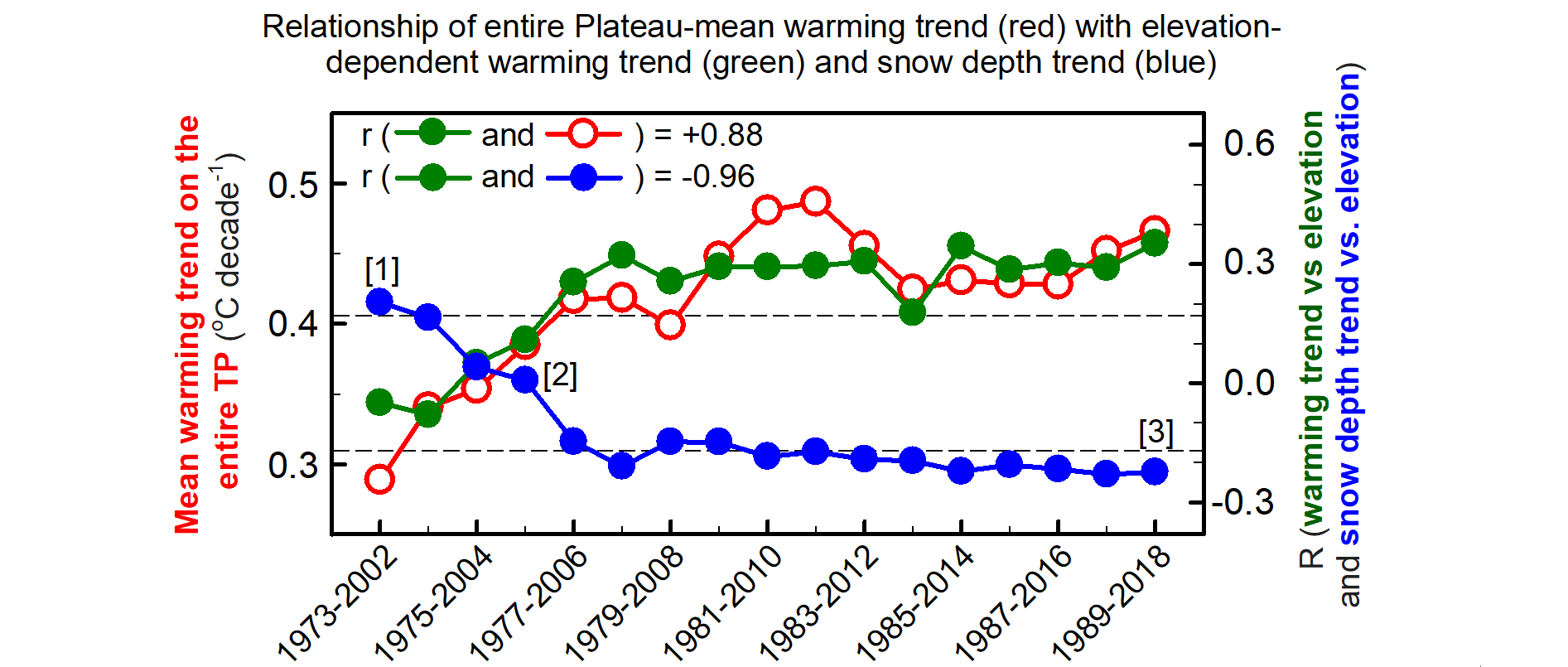 Guo Donglin, Pepin Nick, Yang Kun, Sun Jianqi, Li Duo, 2021: Local changes in snow depth dominate the evolving pattern of elevation-dependent warming on the Tibetan Plateau. Science Bulletin, 66, 1146–1150.