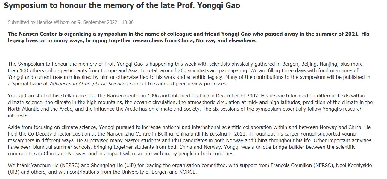 [2022-09-13]This is a forward of the news from the Nansen Environmental and Remote Sensing Center (https://www.nersc.no/news/symposium-honour-memory-late-prof-yongqi-gao)
