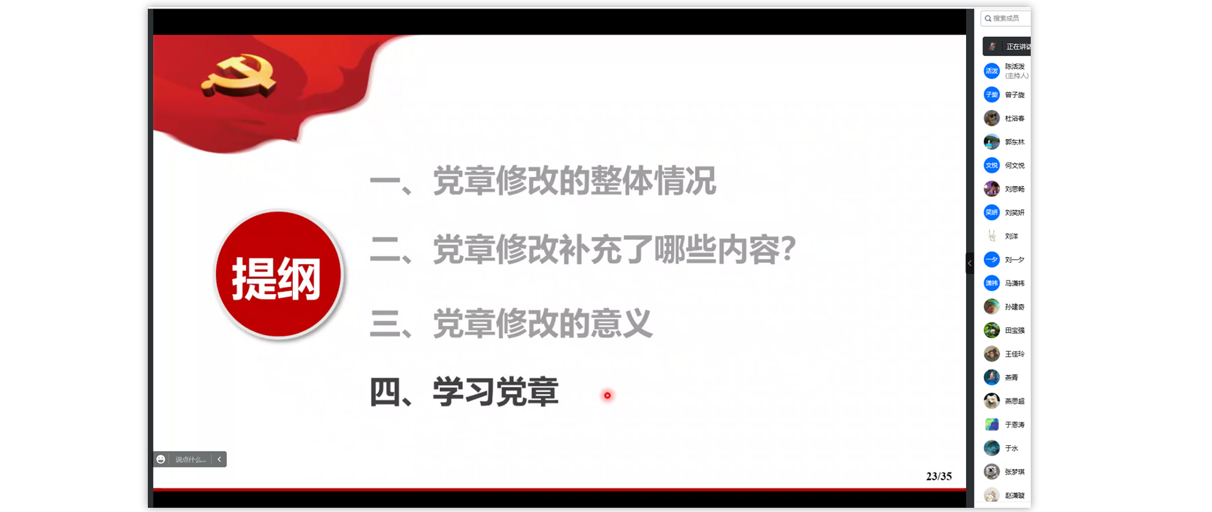 11月24日,中心党支部组织全体党员召开了《中国共产党党章》专题学习会。本次会议以腾讯会议线上的形式举行,支部书记孙建奇研究员主持专题学习会。