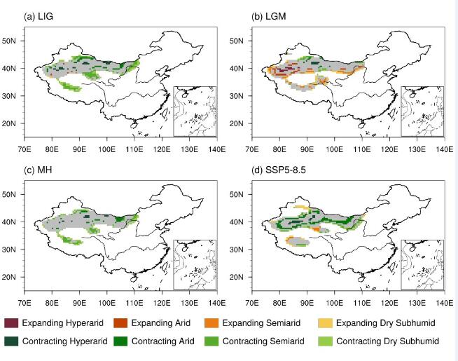 自工业革命以来全球持续变暖,与此同时,全球水文循环加速,干旱等极端天气和气候事件发生频率不断增加。旱地的扩张与旱情的加剧会抑制农业发展并对粮食保障产生威胁,因此,全面了解旱地在不同气候背景下的变化及其原因对于应对气候变化极为重要。然而,现有的器测资料时间较短,而且随着未来不断升温,未来气候必然会超过当前器测数据的极值。因此有必要在更长的时间尺度上分析古气候变化及机制,以提高我们对未来气候变化的理解并增加未来气候预估的可信度。