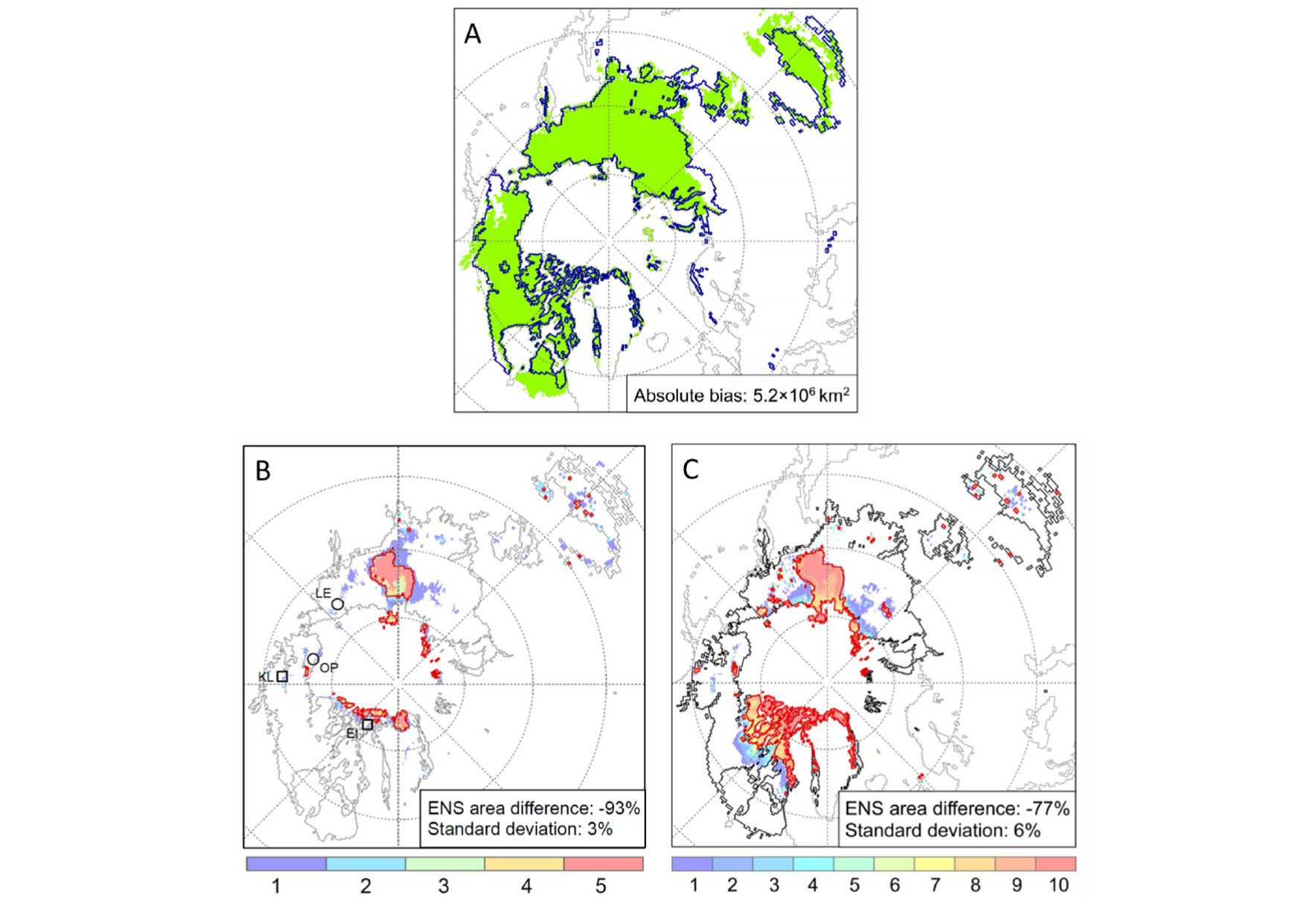 上新世暖期(~3.264–3.025百万年前)的海陆分布、地形和温室气体水平与现在接近,其气候特征对未来气候变化提供了重要历史参照。研究首先通过开展系列敏感性试验,确定了最优的北半球多年冻土模拟方法(图A)。然后利用气温代用资料对上新世模式对比计划第二阶段的多个气候模式进行了约束。最后基于优选模式模拟,表明了上新世暖期近地表多年冻土面积比工业革命时期小93±3%,其主要分布在东西伯利亚山地、加拿大北极群岛和格陵兰北端(图B)。这一结果与现有上新世暖期多年冻土重建记录一致(图B),并与SSP5-8.5情景下本世纪末的近地表多年冻土变化预估相似(图C)。